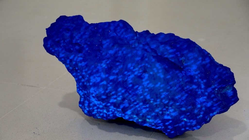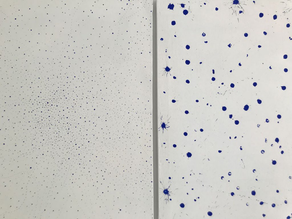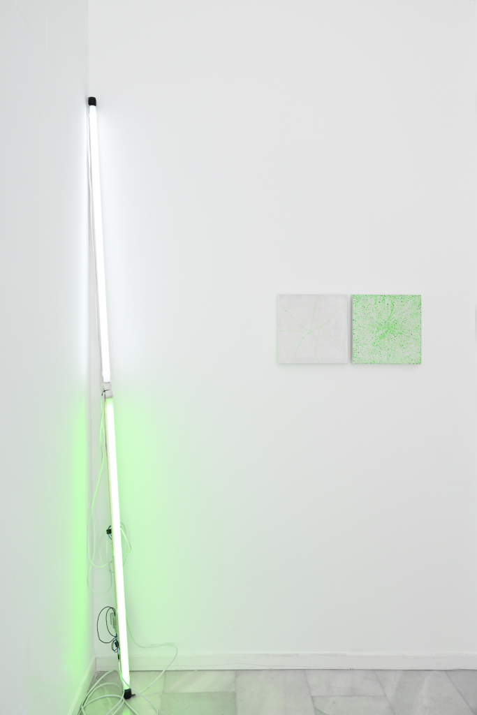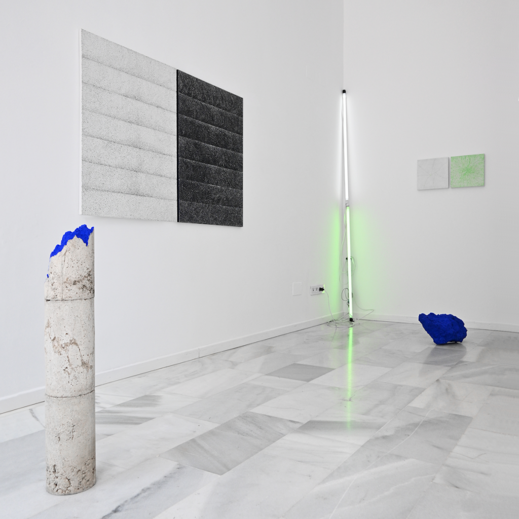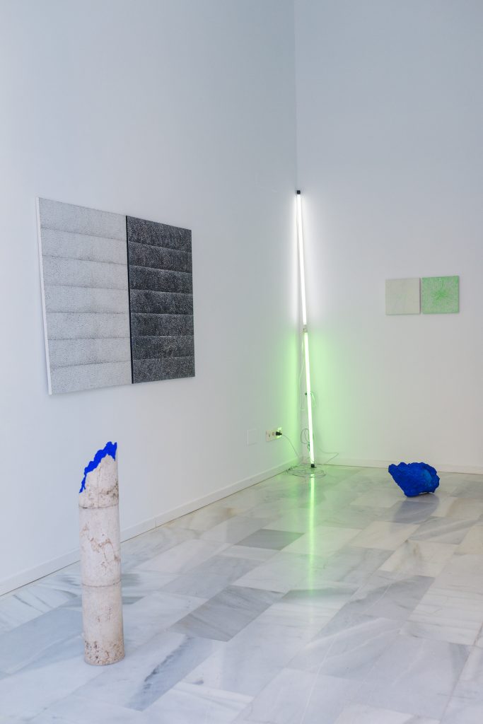 Projecting a loop drawing on a stone, painting another in blue, tracing lines or dots on a piece of paper, recording the path of an ant and, in a more obvious way, playing with a neon tube are the actions performed by Ramón González Palazón. These are ways of writing with light, of thinking of writing as inherent to light. What happens thanks to it is the sign, an effect, “the imprint of one body on another” as Deleuze would say, paraphrasing Spinoza. The sign has to be seen in some possible place, ours, mostly full of opaque bodies. Let us leave aside the shop windows and the mirrors, the pond of Narcissus and the transparent plates of methacrylate. Let us continue with the opaque bodies that go in gradation of color up to the black bodies that, according to Descartes, are so called because their color is common with that of darkness. To affect a body, to write a sign on it, to illuminate it, is a question of angle, of an angle that has become so acute “that there is no longer an angle, but a line through which two opposite visible bodies can meet each other in sight without the intervening body being able to prevent it at any point.” These words of Giordano Bruno lead us to the erotic movement of light. It happens that in this place in which we live, a kind of cavern, it requires the will, each according to his joy, to illuminate the opaque bodies, to see the shadows that are illuminated bodies, to walk in the twilight choosing the right angle to meet the other body. Bodies write each other and themselves with light because they want to be visible in this perpetual transit, even if ephemerally. “Thus we pass, like a breath of blue breeze on stone,” said José Hierro. In another place where our eyes had light or we could see through the darkness like cats, or there was a glow that illuminated everything at all angles at the same time, there would be no need for writing and we would have to invent another word than “life” for existence on a blank sheet of paper.